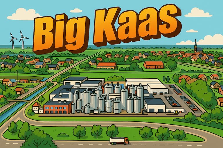 Afbeelding: De fictieve Big Kaas fabriek in Leiden (ChatGPT).