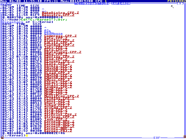 Met de Type() functie kunnen er files laten worden zien. Vanzelfsprekend werkt die met tekst, zoiets hebben we elders hebben gezien. Maar wat deze shell uniek maakt is dat Type() ook kan worden gebruikt om .BMP files direct te laten zien in de shell. Dit brengt een interessante kwestie, waarom zouden shells puur voor tekst bedoeld zijn? Waarom niet meer soorten bestanden?